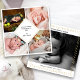 Elegante y simple, este anuncio de 5 fotos de personalizado tiene un bonito diseño de keepsake en ambos lados. La plantilla de fotos está configurada para que añadas 4 fotos en la parte delantera, que se muestran en formato cuadrado / instagram junto con una foto panorámica de sangrado completo en la parte posterior. El diseño presenta un moderno marco superpuesto de puntos dorados y guiones con tipografía impecable. También puede añadir el nombre del bebé, las estadísticas de nacimiento y un breve mensaje de personalizado.