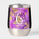¡Que el sexto aniversario del boda amatista sea una celebración inolvidable con este tumbler conmemorativo de acero inoxidable sin tallo! Las elegantes letras con un confetti hexagonal con polvo de oro sobre un fondo amatista violeta añaden un toque memorable a esta ocasión especial y un hito. Personalizar con el nombre de la pareja, fecha de matrimonio y mensaje de felicitación. El reverso muestra un diseño idéntico. Diseño © W.H. Sim. Ver más en zazzle.com/expressionsoccasions