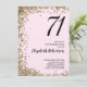 Esta bonito y elegante invitación de cumpleaños número 71 es perfecta para un buen fiesta y le dará un tono elegante y festivo. Nota: ¡El Relieve metalizado está impreso y no es un Relieve metalizado brillante! Este diseño presenta un patrón impreso en oro, rosa y negro, y es una buena elección minimalista para un evento especial para celebrar un cumpleaños de un hito. Personalizar para tu año de cumpleaños, y busca "70" en mi tienda para ver diseños coordinados.