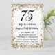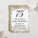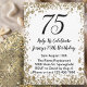 Esta bonito y elegante invitación de cumpleaños número 75 es perfecta para un buen fiesta y marcará un tono de celebración. Nota: ¡El Relieve metalizado está impreso y no es un Relieve metalizado brillante! Este diseño presenta un patrón impreso en oro y blanco, y es una buena elección para un evento especial para celebrar un cumpleaños de hito. Personalizar para su propio año de cumpleaños.