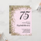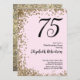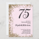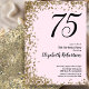 Esta bonito y elegante invitación de cumpleaños número 75 es perfecta para un buen fiesta y le dará un tono elegante y festivo. Nota: ¡El Relieve metalizado está impreso y no es un Relieve metalizado brillante! Este diseño presenta un patrón impreso en oro, rosa y negro, y es una buena elección minimalista para un evento especial para celebrar un cumpleaños de un hito.