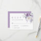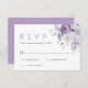Esta elegante tarjeta RSVP de boda presenta un arreglo floral acuático en lavanda, lila y verde en el frente con el reverso coordinado en un violeta polvoriento.