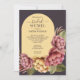 Flores acuáticas elegantes de color rosa y dorado con una hermosa vegetación sobre un fondo marrón morado oscuro y tu texto con letras de moda sobre un fondo de arco dorado. Ideal para el brunch y las animadas invitaciones a la ducha de novia boda o para cualquier ocasión especial, sólo cambia la redacción. COINCIDIENDO con los artículos de nuestra tienda.