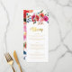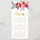 Elegantes cartas de menú de bodas con un fondo blanco clásico, una pantalla floral acuarela, un elegante título tipográfico de Relieve metalizado de oro en sueco y una plantilla de opción de menú.