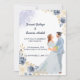 Hermosa invitación de boda ilustrada. Ilustracion acuarela pintado a mano. boda estampado elegante de ondulación azul boda calligrafía boda marina, boda de flores dibujadas a mano color verde otoñal.