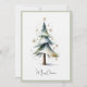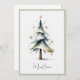 Feliz Navidad. Celebre la temporada con esta carta de Navidades de inspiración vintage, que incluye un árbol navideño de acuarela adornado con delicada vegetación. Los detalles botánicos y el encanto rústico de este diseño lo convierten en una elección destacada para aquellos que aprecian la elegancia retro. El formato no fotográfico garantiza una estética limpia y de moda, lo que lo hace perfecto para todo aquel que busque un saludo de vacaciones elegante y original. La combinación única de elementos de diseño clásicos y de moda de esta tarjeta capta el espíritu de las vacaciones y ofrece un ambiente fresco y moderno. Ya sea enviado a la familia, amigos o colegas, es una manera elegante de decir "Feliz Navidad". Su estilo atemporal garantiza que será apreciado y recordado por los años venideros. Añada un toque de nostalgia a sus deseos de vacaciones con esta elegante tarjeta de árbol de Navidad que celebra la belleza de la temporada de una manera rústica y única.