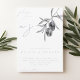 Estas invitaciones a la boda, blancas y lavanda, muy elegantes, están diseñadas con una rama de olivo blanca y negra pintada a mano con sutiles tonos morados. Personalizar con los detalles de su día especial para invitaciones clásicas e inolvidables.