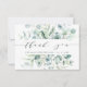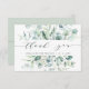 Esta tarjeta de agradecimiento incluye eucalipto de color de agua pintada, hojas botánicas verdes y azul claro con un guión "muy" en la parte posterior. Perfecto para bodas, cumpleaños, graduaciones y otros eventos.