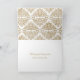 Copyright © 2019 Socialite Designs Inc. Personalice nuestra elegante tarjeta de agradecimiento con floritura y damasco de oro. El diseño tiene una fuente de color dorado bruñido sobre un fondo blanco y dos elegantes diseños de florituras y espirales. El interior tiene un patrón de damasco y un área de mensaje personalizable. Una hermosa plantilla de tarjeta que se puede personalizar para cualquier expresión. El color de fondo también se puede cambiar de blanco.