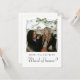 ¡Pida a su amigo más especial que se ponga de pie a su lado con esta tarjeta de fotos de propuesta de doncella de honor personalizada! Esta elegante tarjeta presenta una encantadora reverencia verde y te permite añadir tu propia foto con un texto personalizado como 'SARAH, ¿SERÁS MI empleada de honor?'. Haga de su propuesta de doncella de honor verdaderamente memorable y única con este cuidadoso boda