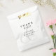 Elegantes bolsos de favores de boda con un marcador de escritura gris y en gris con sus nombres y fecha de boda en letra serif negra.