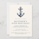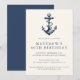 Elegante plantilla de invitación de la fiesta de adultos de Ancla Náutica en azul marino clásico.