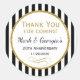 Elegantes pegatinas de aniversario con rayas blancas y negras con un sofisticado marco de acento purpurina dorado. Estos pegatinas fiestas de moda y elegante aniversario serán un éxito como decoración fiesta de aniversario o como etiquetas de favores. ¡Fantástico para el primero 15 10 15 20 25 30 35 40 45 50 55 60 y cualquier aniversario boda que haya entre! Dicen "Gracias por venir".