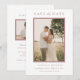 Un refinado y moderno anuncio de boda con foto de compromiso enmarcada en rosa polvorienta en el anverso, y un panel de detalles en el reverso con fecha, ubicación y sitio web de la boda. El suave tono rosa añade elegancia romántica y discreta perfecta para bodas de primavera, jardín o boho-chic. Todo el texto y la foto son totalmente personalizables.