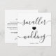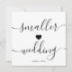 Esta es una simple tarjeta de anuncio de boda en blanco y negro para informar a sus invitados que han decidido reducir su boda, tener una boda más pequeña, boda micro, boda íntima debido a ciertas circunstancias.