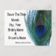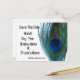 Utilice estas elegantes tarjetas postales de bodas de pavos reales para informar a sus amigos y familiares sobre su reciente compromiso y para guardar la fecha de su boda. Este diseño de pluma de pavo real en sus tarjetas de anuncio de compromiso agregará un toque especial a su boda con tema de pavo real.