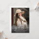 Tarjeta de anuncio de graduación simple para graduado con fuente de escritura y foto de retrato de sangrado completo en la parte frontal con nombre y detalles de graduación. La parte trasera tiene una segunda foto con detalles adicionales. Haga clic en el botón de edición para personalizar este diseño.