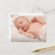 Anuncie el nacimiento de su recién nacido o chica con esta moderna postal de invitación fotográfica que muestra el mensaje "Feliz Navidad" en un elegante y delgado guión blanco junto con su nombre familiar y el año sobre su foto horizontal favorita. El reverso tiene tu mensaje personal en negro sobre un fondo blanco y tu dirección de retorno para un envío fácil.