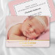 Una elegante y moderna tarjeta de anuncios de natalidad con un auténtico Relieve metalizado en la elección de oro, plata o oro rosa. Sube tu propia foto para crear una tarjeta única que celebre a tu chica de recién nacido. Para completar simplemente el personalizar del nombre, la fecha y las estadísticas de nacimiento, y añadir un mensaje personal.