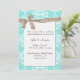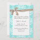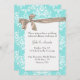 Elegante boda ensayar la invitación a cenar en un damasco azul y blanco acuático, con un área de texto blanco, en el medio. Gráficos de una cinta satinada y una proa de satén de color, decoran la parte superior de la invitación. El texto en texto está listo para personalizar su evento.
