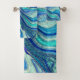 Añada un toque de Nueva Zelanda al cuarto de baño con este elegante juego de toallas, que incluye elegantes y aleatorias remolinos iridiscentes, azules cerules y morados inspirados en conchas paua (abulón arco iris). Diseño © W.H. Sim. Todos Los Derechos Reservados. Ver más en zazzle.com/expressionsoccasions