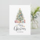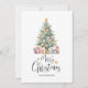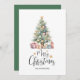 Haga sus saludos de vacaciones extra especiales con esta tarjeta de Navidades personalizada que incluye un delicado árbol navideño de acuarela y regalos hermosamente envueltos debajo. El elegante mensaje "Feliz Navidad" se complementa con la opción de añadir tu nombre o apellido, creando un toque cálido y significativo.