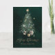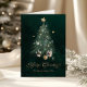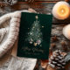 Comparte la belleza de las fiestas con esta lujosa tarjeta que presenta un profundo árbol de Navidad verde, estrellas doradas y regalos envueltos. La brillante letra “Feliz Navidad” en escritura dorada le da un toque refinado y clásico — perfecto para correspondencia elegante de fiestas.
