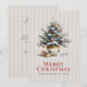 Envíe sus tarjetas de vacaciones a sus Navidades con facilidad este año con esta carta simple y elegante que tiene un árbol de Navidad decorado en una preciosa olla de porcelana con algunos regalos envueltos debajo del árbol. Un fondo vintage de rayas verticales azul-gris claro y beige crudo le da un toque elegante a este diseño. Las fuentes clásicas de serif explican con detalle "Feliz Navidad de nuestra casa a la tuya". Puede editar este texto o salir como está escrito. La parte posterior de la tarjeta tiene un ejemplo de mensaje de vacaciones junto con su(s) nombre(s). Edite la plantilla y tenga una tarjeta de Navidades personalizados que se sentirá orgulloso de enviar a amigos, familiares y asociados.