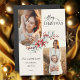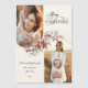 El saludo fotográfico de sus vacaciones causará una impresión duradera con este diseño único que incluye dos plantillas de fotos en forma de arco (la orientación vertical funciona mejor) con bordes dorados, un precioso rociado de botánicos de invierno acuarelas en rojo y verde, personalizado "Feliz Navidad" gráfico de texto en un elegante tipo de letra de caligrafía fluida y campos de texto editables en un fondo abdominal. El color del gráfico de texto se puede cambiar en el editor de diseño.