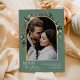Este diseño presenta un arco de verde moderno con un delicado marco dorado brillante con un contorno de marco blanco y una sola foto vertical. Para realizar cambios avanzados, seleccione la opción 'Haga clic para personalizar más' en la sección 'Personalizar esta plantilla'. Aquí puede editar/agregar cuadros de texto, color y fuente.