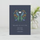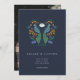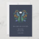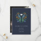 Esta elegante tarjeta Save the Date de la Colección Gatsby presenta flores de estilo Art Déco dibujadas a mano en tonos verdes y turquesa con un toque de amarillo mostaza. Incluye espacio para tu foto de compromiso en la parte posterior.