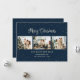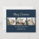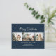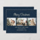 Elegante foto azul personalizado tarjetas Feliz Navidad con un collage de fotos y caída de nieve en un fondo azul. Personaliza fácilmente esta tarjeta azul de Navidades de fotos con tus imágenes favoritas, un nombre de familia y un texto.