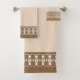Elegante juego de toallas de baño beige y marrón.