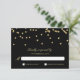 Tarjetas RSVP de Confetti de Polka-Dots, elegantes y personalizadas en negro y oro. Invitaciones de boda