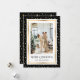 Tarjeta de Navidades de fotografía moderna en negro y oro con un elegante tipo de letra de guión y un bonito fondo estelar en negro y oro. Personaliza fácilmente esta tarjeta de Navidades de fotos festivos con tu foto y el nombre de la familia.