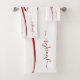 Este moderno juego de toallas rojas y blancas no pasa desapercibido en tu nuevo cuarto de baño. Póngalo en pareja con una cortina de ducha a juego y esteras para un nuevo aspecto. Moderna Toalla De Baño Rojo A Rayas Blanco Elegante.