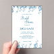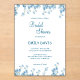 ¡Celebremos a la futura novia con esta elegante invitación a la ducha de novia floral azul! Con sus delicadas flores azules colgadas sobre un suave fondo blanco, este diseño exuda sofisticación y encanto. El elegante tipo de letra del guión destaca detalles clave, lo que lo convierte en una elección perfecta para una celebración elegante y atemporal de la ducha de novias. Personalizable total para coincidir con los detalles del evento, esta invitación marca el tono perfecto para una reunión memorable.