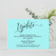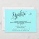 La distinción de esta suite se debe a la elaborada y giratoria fuente de escritura utilizada para las frases de acento. En caso de que necesite informar a sus huéspedes de que su boda ha sido cancelado, esta tarjeta le ofrece una opción elegante. En esta pieza, el tipo de letra de caligrafía se utilizó para crear un gráfico que representa la palabra "Actualizar". Utilice los campos de plantilla para agregar sus datos personales y hacer que este diseño sea el suyo. El fondo puede cambiarse a cualquier color que prefiera. Por favor, contacte con cualquier solicitud especial o para personalizar la asistencia. // 98 //