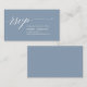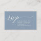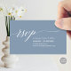 Esta es la tarjeta RSVP de la invitación clásica de la Boda moderna y elegante, con un tema polvoriento azul. Puede incluir el sitio web de su boda, el enlace web de RSVP y otros detalles.