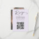 Esta moderna tarjeta RSVP combina elegancia y comodidad con tipografía limpia y contemporánea sobre un suave fondo lila. Una sección dedicada de código QR permite a los clientes acceder rápidamente a la información de su sitio web boda o RSVP, lo que simplifica el proceso de respuesta. El reverso ofrece un toque personal con espacio para la foto y el monograma, añadiendo un detalle único e inolvidable. Completamente personalizable, este diseño elegante combina el minimalismo con la sofisticación, asegurando que se complemente con cualquier estilo boda, al tiempo que le ayuda a reunir respuestas con facilidad y estilo.