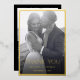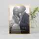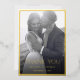 Esta es una moderna y elegante tarjeta de agradecimiento boda en blanco y negro usando un elegante tipo de letra en Relieve metalizado dorado junto con una única foto minimalista con un borde de marcos dorados, también usando Relieve metalizado de oro real. El reverso incluye un mensaje que puede personalizar, junto con otra foto. Este diseño aplica un filtro a tus fotos para que tengan un ligero toque moderno. Puede eliminar este filtro haciendo clic en el botón azul y seleccionando los filtros que desea editar. Cambie fácilmente los colores, el texto y las fotos según sea necesario. Póngase en contacto con el diseñador para cualquier consulta relacionada con este diseño.