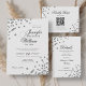 Una elegante tarjeta RSVP de boda con un romántico motivo de confeti purpurina y texto QR RSVP personalizado. Impresione a su familia y amigos con este diseño elegante y moderno. Es totalmente personalizable, fácil de usar y personalizado. ¡No te quedes sin el tuyo!