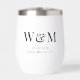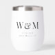 Moderno vaso de vino termal para celebrar a su boda con sus iniciales de monograma, fecha boda y ubicación en elegante tipografía clásica.