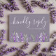 Tarjeta RSVP simple y elegante, con obras de arte de acuarela originales de nuestro estudio. Se han creado elementos de lavanda y vegetación intemporales para tu día especial en mente. Fácil de personalizar con su información única.