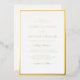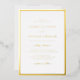 Sencilla y elegante, esta invitación formal a la boda incluye un elegante borde y un elegante guión caligráfico presionado en Relieve metalizado de oro real.