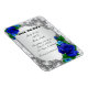 rosas azules bonitos y marco de patrón de hojas de plata. Este hermoso ahorrador imán de fecha es una manera elegante y duradera de anunciar su gran día. Personalice el imán cambiando el texto en los campos proporcionados. Puede cambiar el estilo de fuente, el tamaño y el color.
