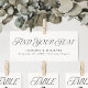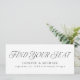La cabecera de la gráfica de asiento del boda de moda con la frase "Encuentra tu asiento" se muestra en una tipografía moderna y negra con fondo blanco. Personalice la tarjeta de cabecera del gráfico de asientos en blanco y negro con sus nombres, fecha de boda y ubicación del boda.
