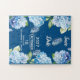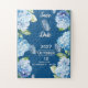 Anuncie su día especial con estilo con esta preciosa tarjeta boda "Save the Date". Con delicados florales de horangea azul y un guión elegante en un suave fondo azul, esta invitación le da un tono romántico a su boda de octubre. La tarjeta destaca la fecha del boda (domingo 12) y la hora (6 PM), lo que lo hace llamativo e informativo. Perfecto para parejas que buscan una mezcla de belleza y simplicidad en su papelería boda.