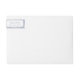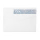 Delicadas etiquetas de dirección azul polvoriento con detalles florales blancos. Diseño moderno y elegante para un boda de temática blanca y azul claro.