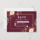 Tarjeta de RSVP de Boda Floral Acuarela Granate Oro